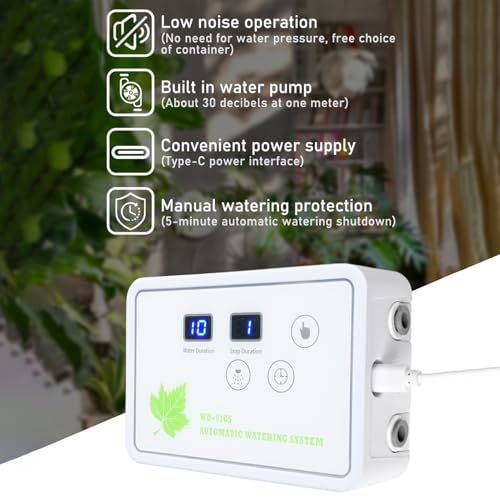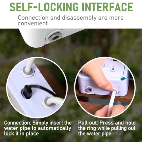 Fonction de levage de 2 mètres pour un placement flexible : le système peut soulever l’eau jusqu’à 2 mètres, ce qui vous permet de placer les récipients d’eau avec flexibilité par rapport à vos plantes. Cette fonction est particulièrement utile pour les jardins surélevés ou les arrangements de plantes à plusieurs niveaux.
