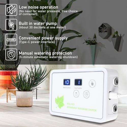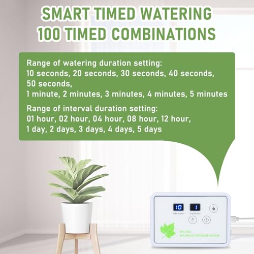Spécification: Système d’arrosage automatique pour pots, programmateur d’arrosage intelligent avec pompe auto-amorçante et connexions anti-fuites pour jusqu’à 16 plantes
