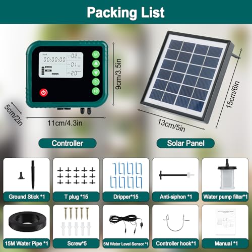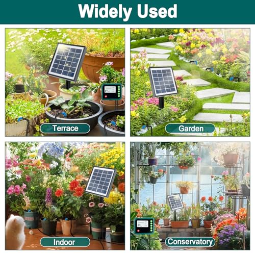 Spécification: Système D’irrigation Automatique Solaire avec écran LED, Système D’arrosage Goutte-à-Goutte Automatique avec 880 Modes de Minuterie et Tuyau de 15 m, pour Jardin, Balcon et Plantes en Pot D’extérieur