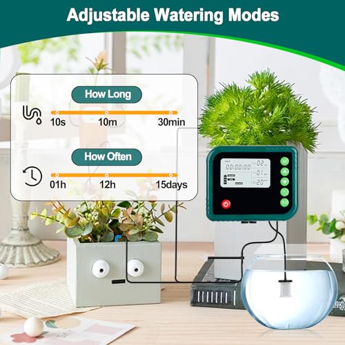 🌿【880 Modes D’arrosage Réglables Individuellement】: Choisissez parmi 40 durées de fonctionnement (10-55 secondes, 1-30 minutes) et 22 intervalles (1-12 heures, 1-15 jours) – un total de 880 combinaisons possibles pour prendre soin de vos plantes de manière optimale. Particulièrement adapté aux espèces végétales sensibles, changeantes ou exigeantes.