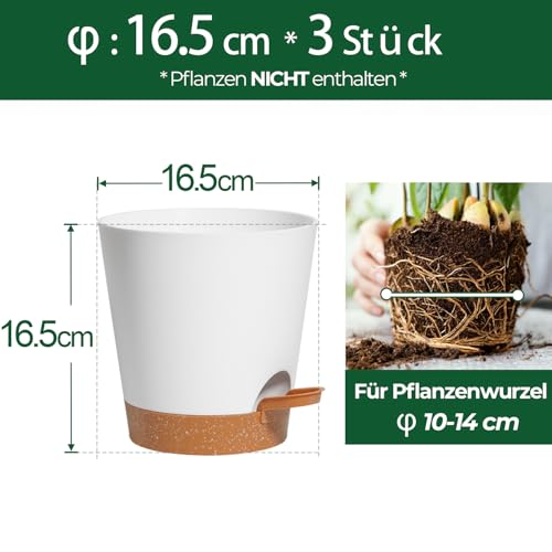 T4U 3 Pcs Pots de Fleurs en Plastique Blanc 16.5cm Auto Arrosant, Pot Plante Intérieur de Système d’arrosage Convient aux Orchidee, Basilic et Herbes Pot de Fleur