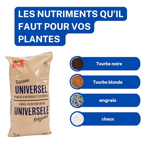 Terreau Universel 50L – Toutes Les Variétés de Plantes Intérieur et Extérieur – Jardin, Terrasse, Balcon, Potager – Palmier, Plantes Grasses, Semis, Bonsai, Légumes, Cactus, …