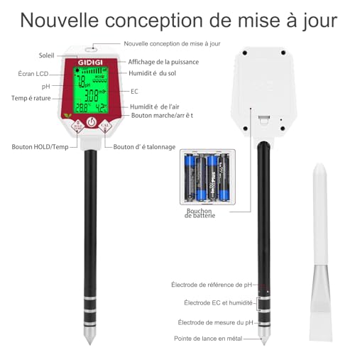 Spécification: Testeur de pH et d’humidité du Sol 6 en 1, Moniteur d’humidité des Plantes, testeur numérique de Sol pour Plantes, capteur de pH pour Jardinage, Agriculture, Plantes d’intérieur et d’extérieur