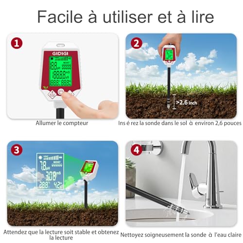 Large gamme et service satisfaisant : il peut être utilisé à l’intérieur et à l’extérieur. Le compteur de sol peut être utilisé dans votre jardin, ferme, plantes en pot, plantes grasses, etc. Nous nous engageons à fournir aux clients un service satisfaisant. Si vous n’êtes pas satisfait du produit, veuillez nous contacter.