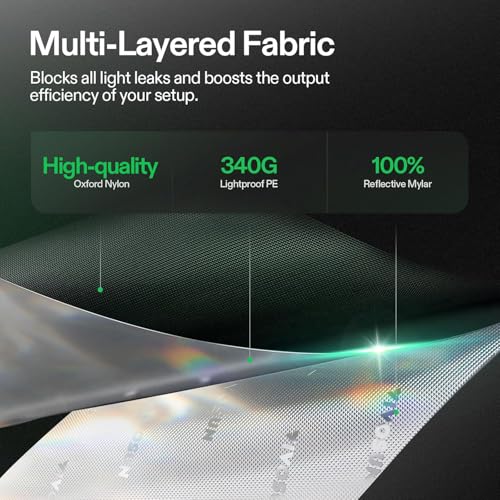 Garde Toute la Lumière à L’intérieur : Tente de culture hydroponique en mylar Vivosun est fabriquée en toile Oxford 600D de haute qualité doublée d’une couche de PE renforcée et de parois en mylar 100 % réfléchissantes, qui peuvent bloquer efficacement toute fuite de lumière et augmenter l’efficacité de sortie de votre installation; La partie zippée a également été améliorée avec la doublure intérieure noire pour empêcher la lumière de pénétrer dans la tente ; Il n’y a pas besoin de rabats ou de ruban adhésif supplémentaires, vous pouvez simplement fermer la fermeture éclair pour créer un environnement étanche à la lumière.