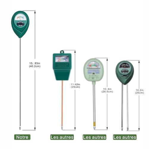 Moins de dommages : une seule sonde cause moins de dommages aux racines des plantes par rapport aux sondes doubles ou multiples, et lorsque vous retirez la sonde après le test, elle ne fera pas ressortir beaucoup de terre.