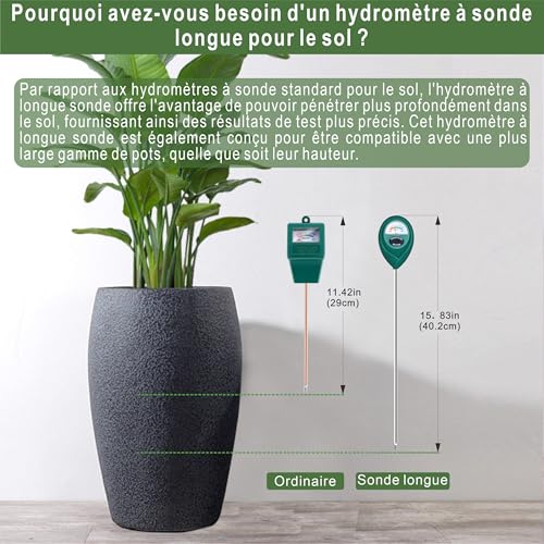Spécification: XLUX Lot de 2 capteurs d’humidité du Sol à Longue sonde pour Utilisation Profonde, capteur de Moniteur d’eau, hygromètre pour extérieur et intérieur, Grandes Plantes en Pot, Fleurs, Jardinage