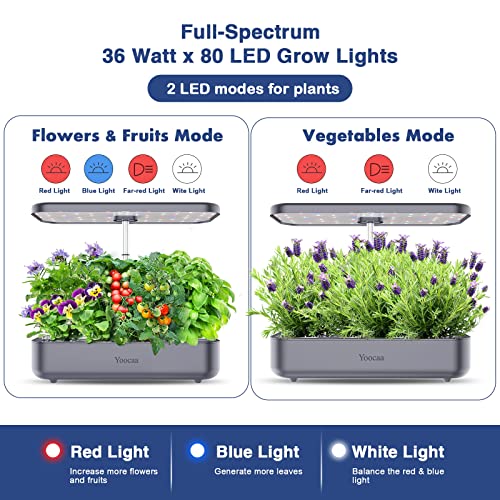 【Récolte de grande capacité】Jusqu’à 12 plantes à la fois, cultivez plus, économisez plus. Le jardin d’herbes hydroponiques Yoocaa est entièrement automatique et auto-arrosant, sans terre et sans tracas. Obtenez des herbes fraîches à portée de main tout au long de l’année