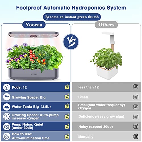 Spécification: Yoocaa Système de Culture hydroponique à 12 dosettes, Kits et systèmes pour Cultures hydroponiques (Gris)